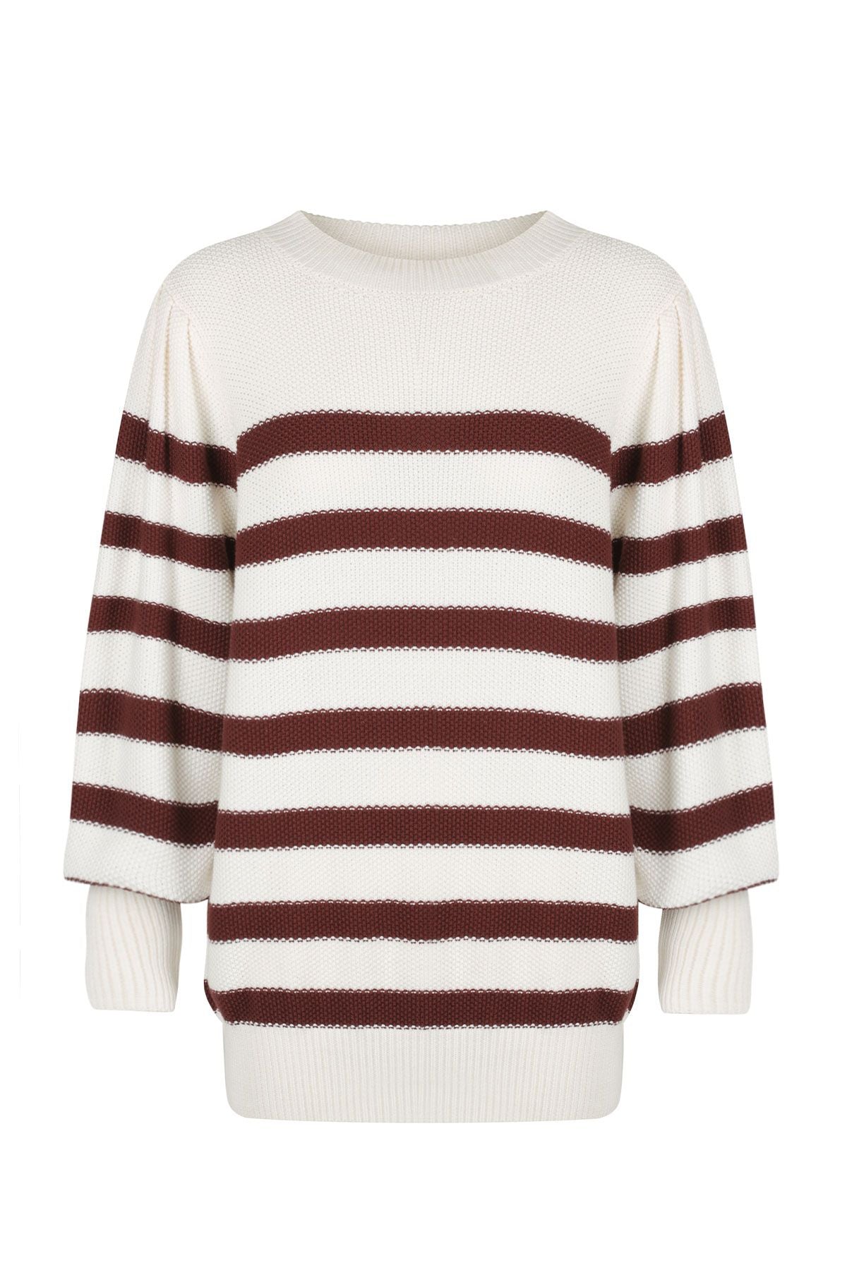 Stripe cotton blend knit jumper with exaggerated cuffs.