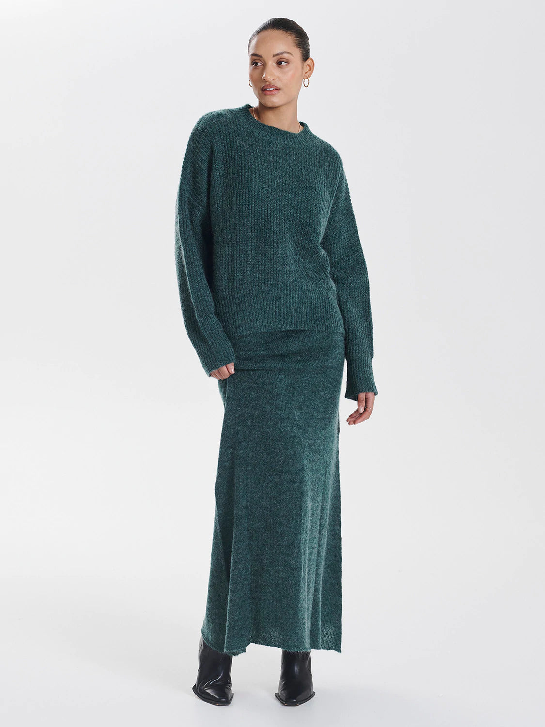 Product details Embrace deep, dark hues as the weather gets colder with the Mary Mohair Midi Skirt by ENA PELLY. Soft to the touch, this knitted piece is bound to be a cold day favourite with its easy to pair look....Read more