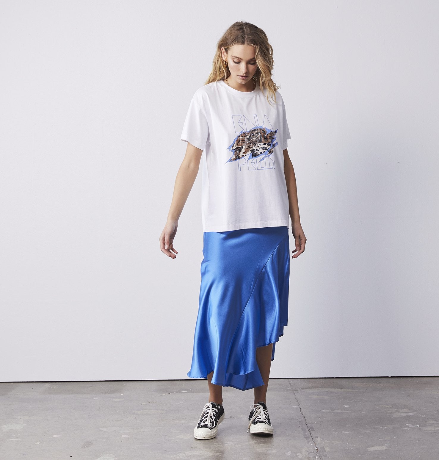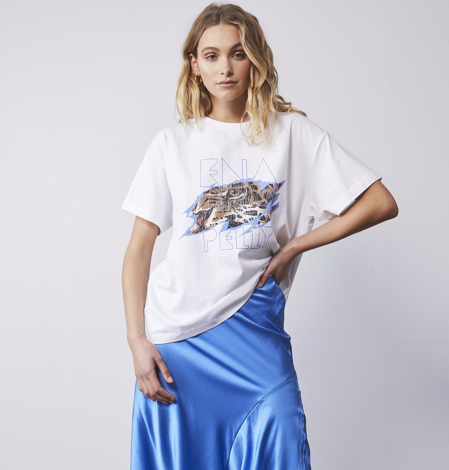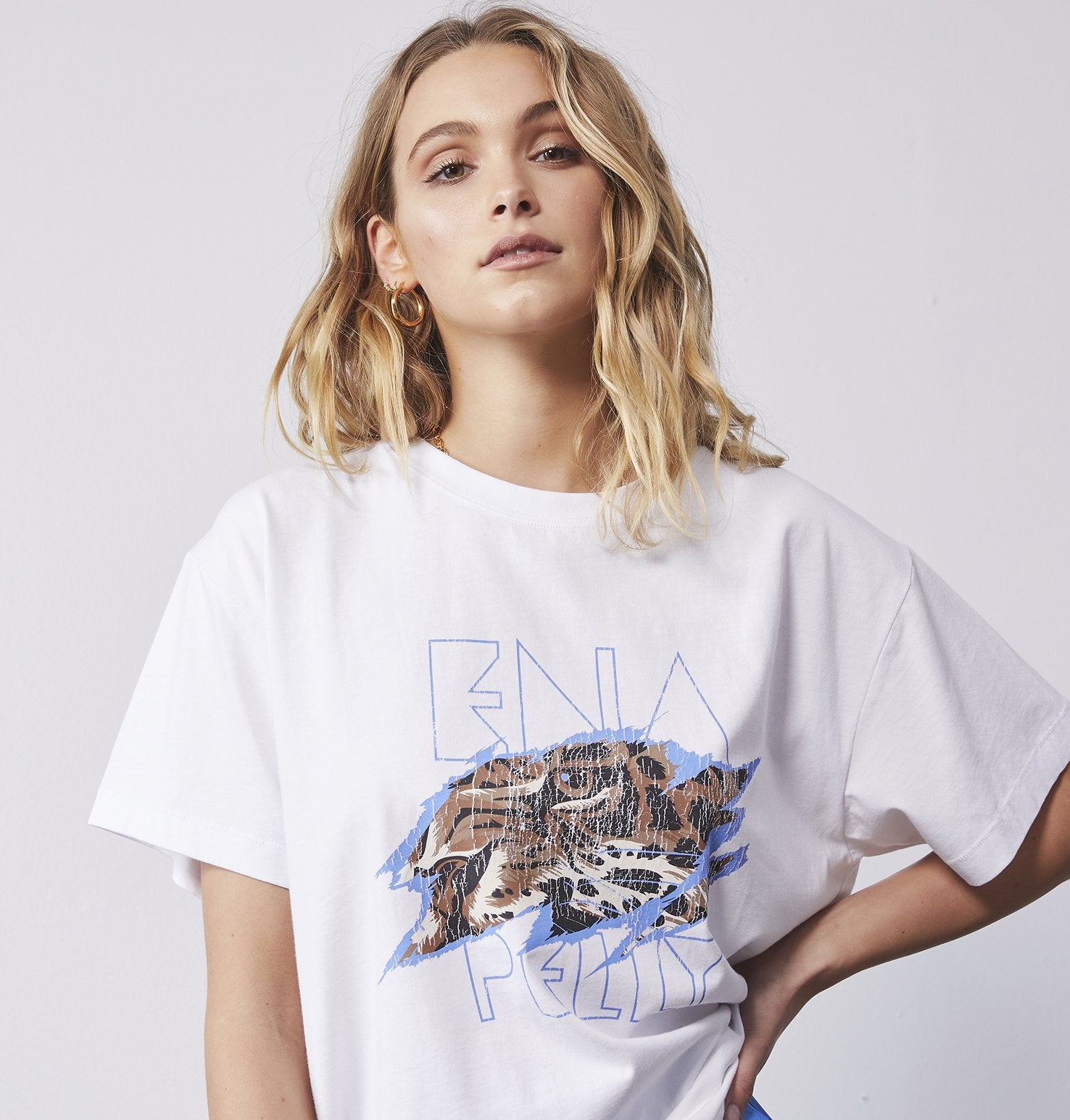 The oversized block tee silhouette featuring a Tigers eye graphic. Cut in a mid-weight cotton jersey with rib neckline and twin needle topstitched finishing. We recommend your true size as this is an oversized fit.