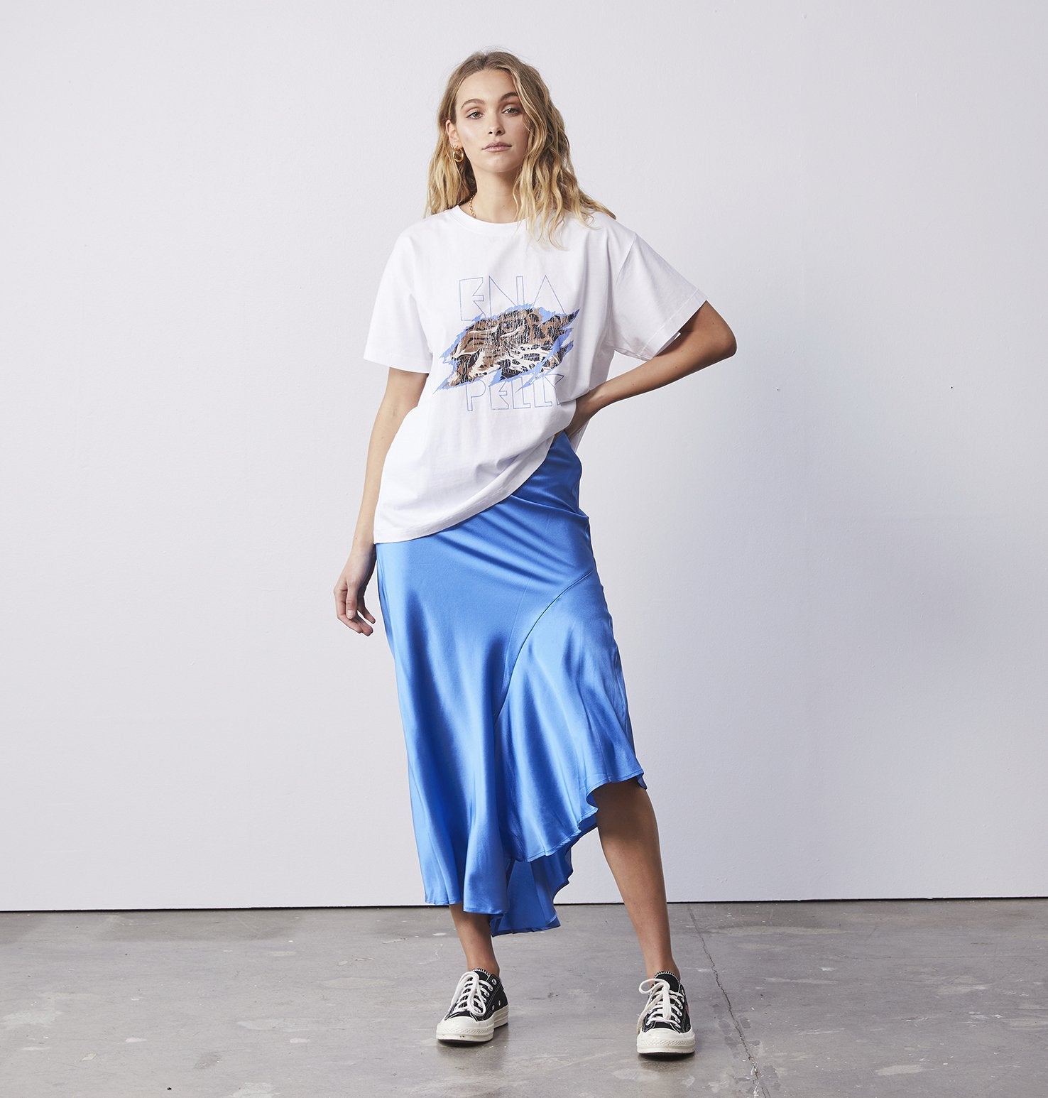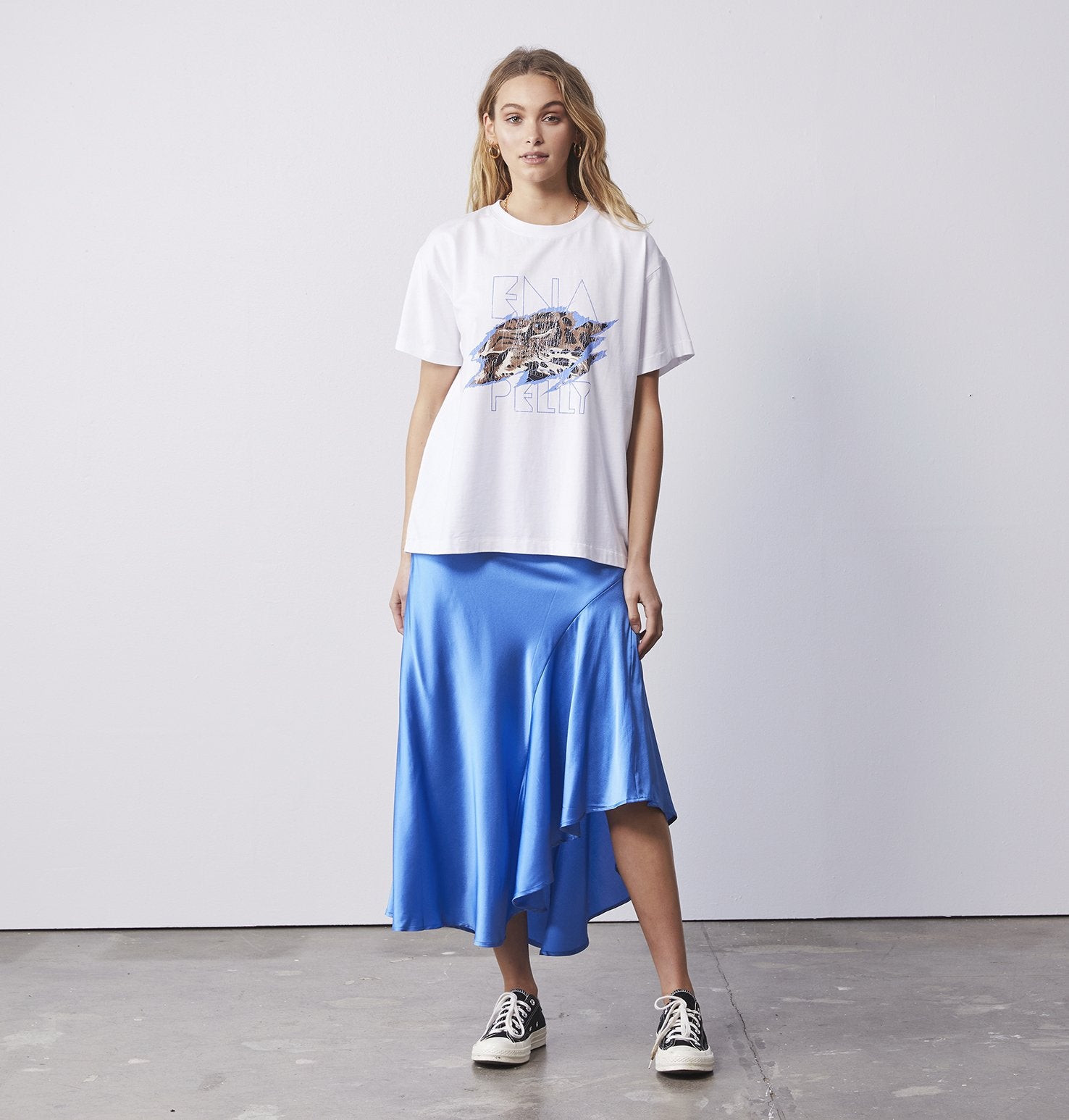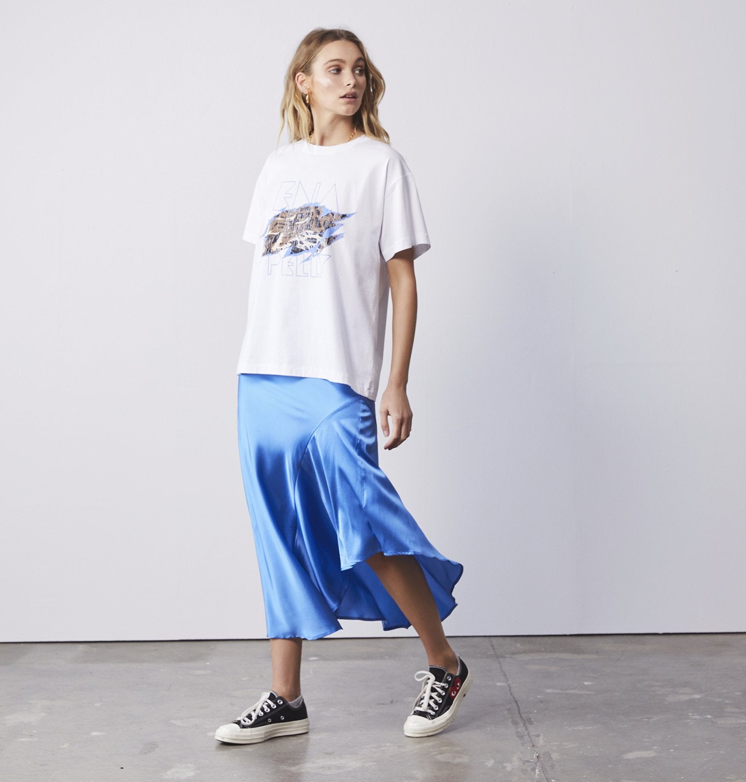 The oversized block tee silhouette featuring a Tigers eye graphic. Cut in a mid-weight cotton jersey with rib neckline and twin needle topstitched finishing. We recommend your true size as this is an oversized fit.