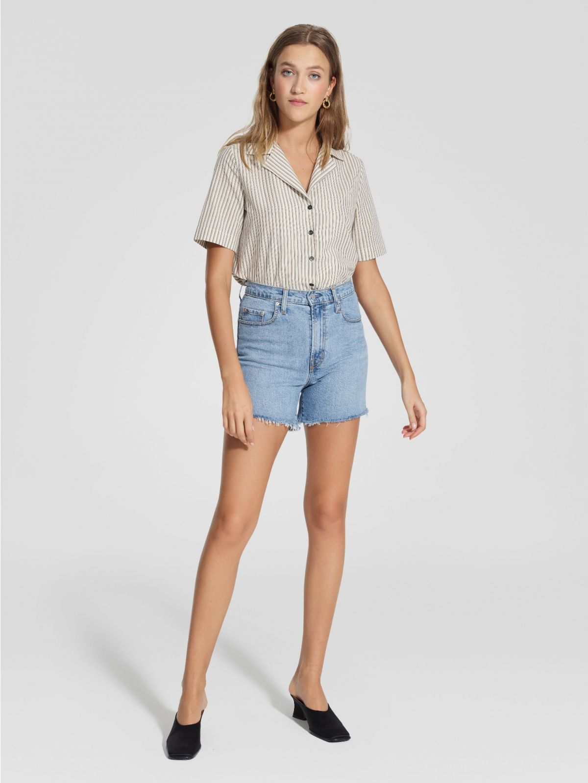Make a statement of the denim variety. The Pisa Skirt Pisa is a slim fitting design with an angled un-even hem and double button detail along a skewed waistband. A contemporary take on the classic Indigo Denim Skirt. Inspired by angles, this skirt is best worn back a layered top look. Style a luxe rib and linen shirt, with a tuck, and you have a modern Italian inspired look.